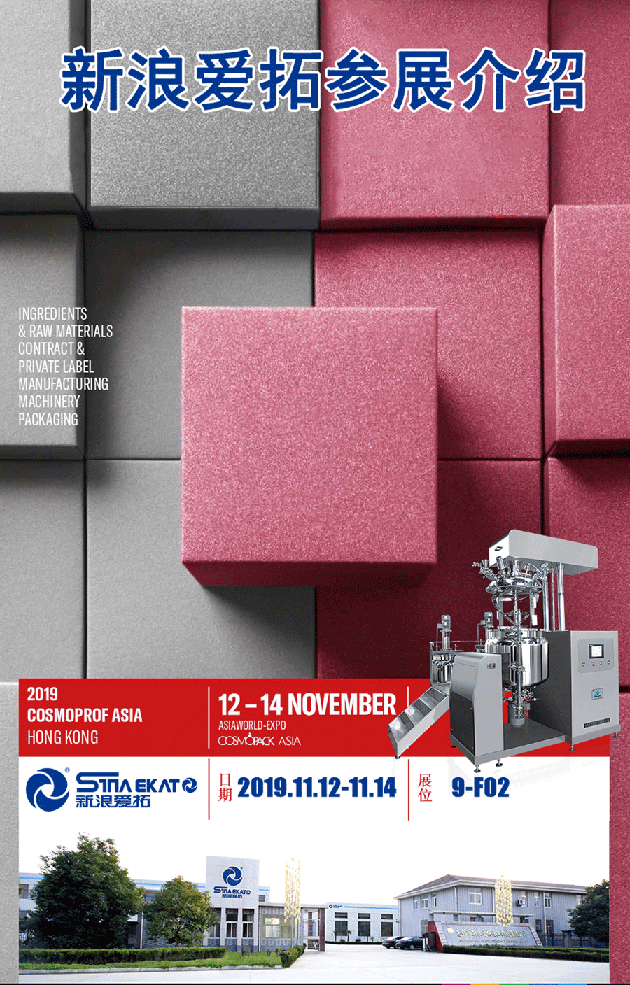 【Sina aituo chemical machinery equipment】Participate in this exhibition and meet you at booth 9-f02. Sina Alto is a cosmetics machinery and equipment manufacturing company with 30 years of equipment production experience. The whole line is provided with vacuum homogenization emulsifier, water treatment, filling machine, labeling machine, stainless steel tank, etc. all of them are available. Welcome to Sina Alto official website for more details!